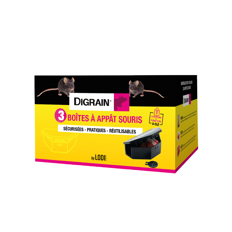 DIGRAIN® Boîtes à appât souris sont des pièges sécurisés, pratiques, solides et réutilisables, conçus pour la lutte contre les souris.