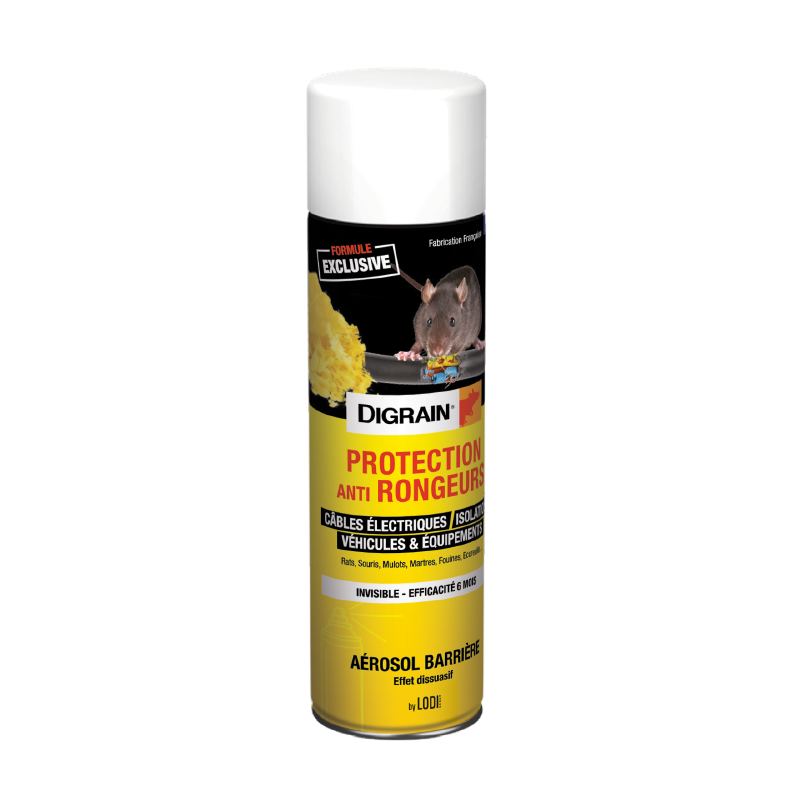 Se connecter S'inscrireDIGRAIN® Protection anti-rongeurs est une solution à vaporiser contenant une résine qui va se déposer sur les matériaux pour les protéger, et cela jusqu’à 6 mois après l’application du produit.