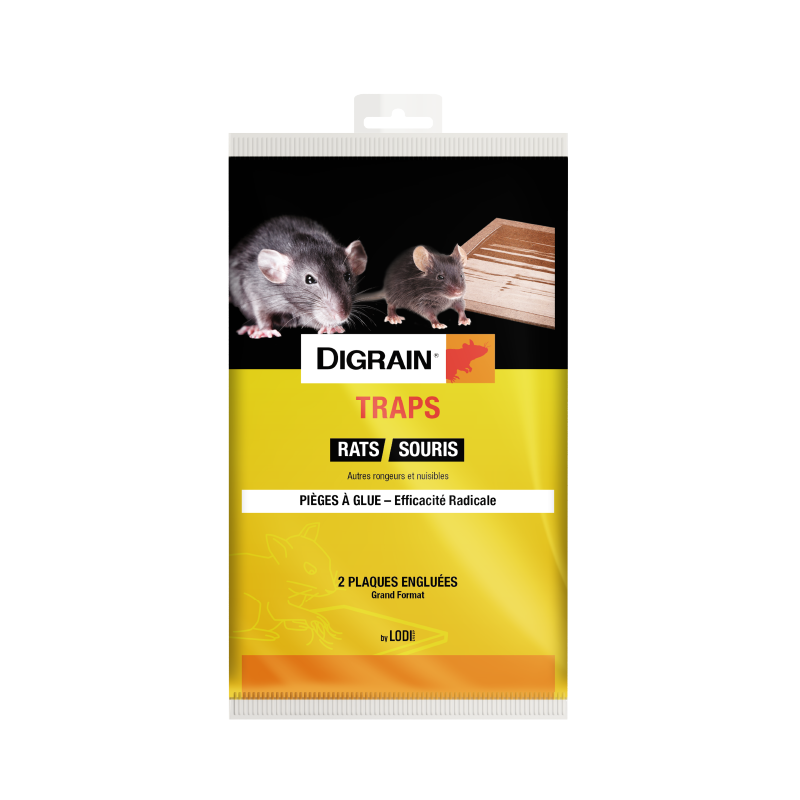 DIGRAIN ® Traps sont des pièges englués destinés à lutter contre les rongeurs, et plus précisément contre les rats et les souris.