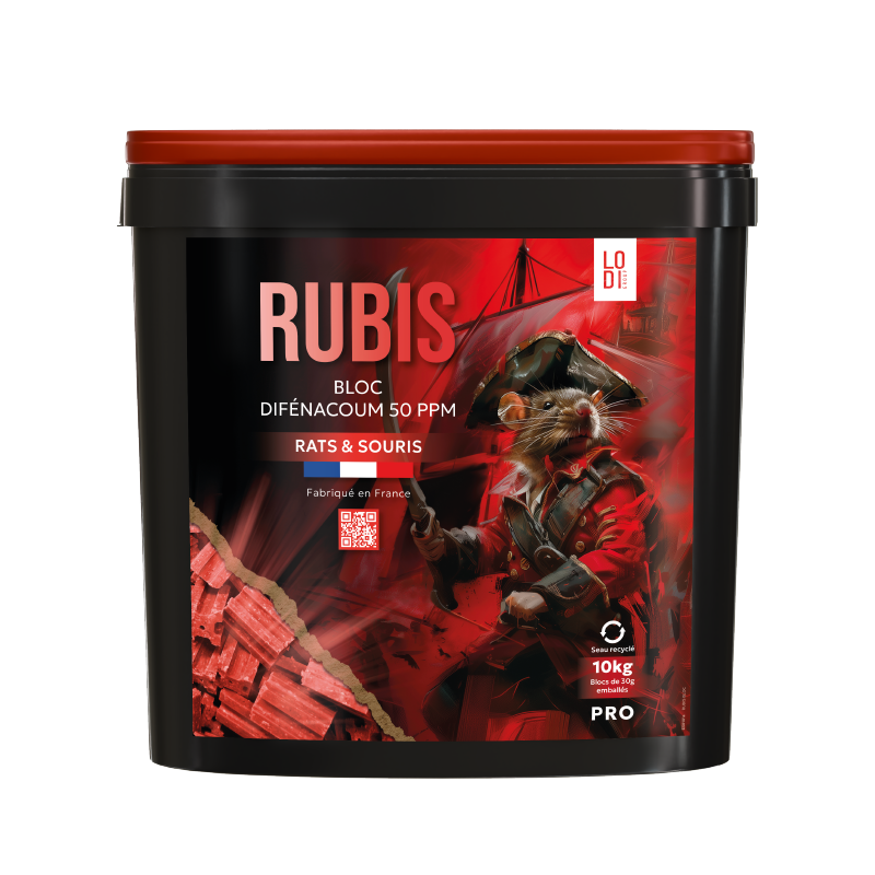 RUBIS Blocs 30g emballés – 10kg est un appât prêt à l’emploi, conçu pour combattre efficacement les infestations de rats et de souris. Ce bloc rodenticide est paraffiné, à base de céréales, ce qui le rend très attractif pour les rongeurs.
